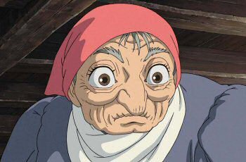 In Howl’s Moving Castle the crone is the protagonist, something precious and rare, but because Sophie isn’t actually old, she lacks the cliché windbaggery qua wisdom old people often exude. She’s aware of herself as wallpaper and sets about grandmothering Howl’s space. She cleans away the ashes in the hearth and makes sure Calcifer has fresh logs to eat.
