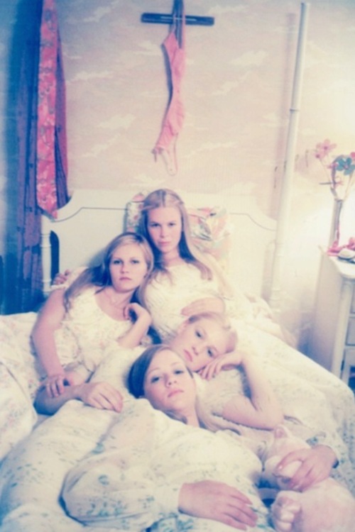 The Virgin Suicides GLORIFIES its “protagonists” deaths. They are each sad, blonde Snow Whites and Sleeping Beauties forever preserved in the minds of our narrators, a group of loser young (now adults) men who obsessively pore (are still poring) over all the details of the girls’ lives, any piece of the puzzle they could garner to make sense of the girls’ tragic deaths.